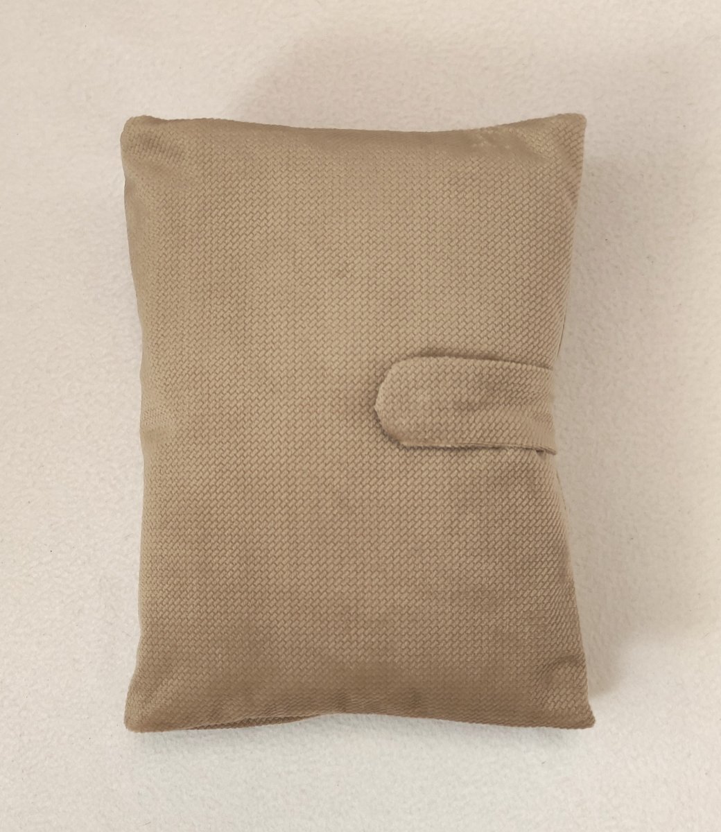 Plenkovník je ušitý z Velvet sametu barvy capuccino (100% polyester), který v sobě skrývá eleganci, luxus, funkčnost a zároveň neodolatelnou měkkost. Podšívka je ze 100% bavlny. Plenkovník je vyztužen vliselinem, takže hezky drží tvar. Zapínání je na magnetický patent s možností zapnutí na dvě polohy.