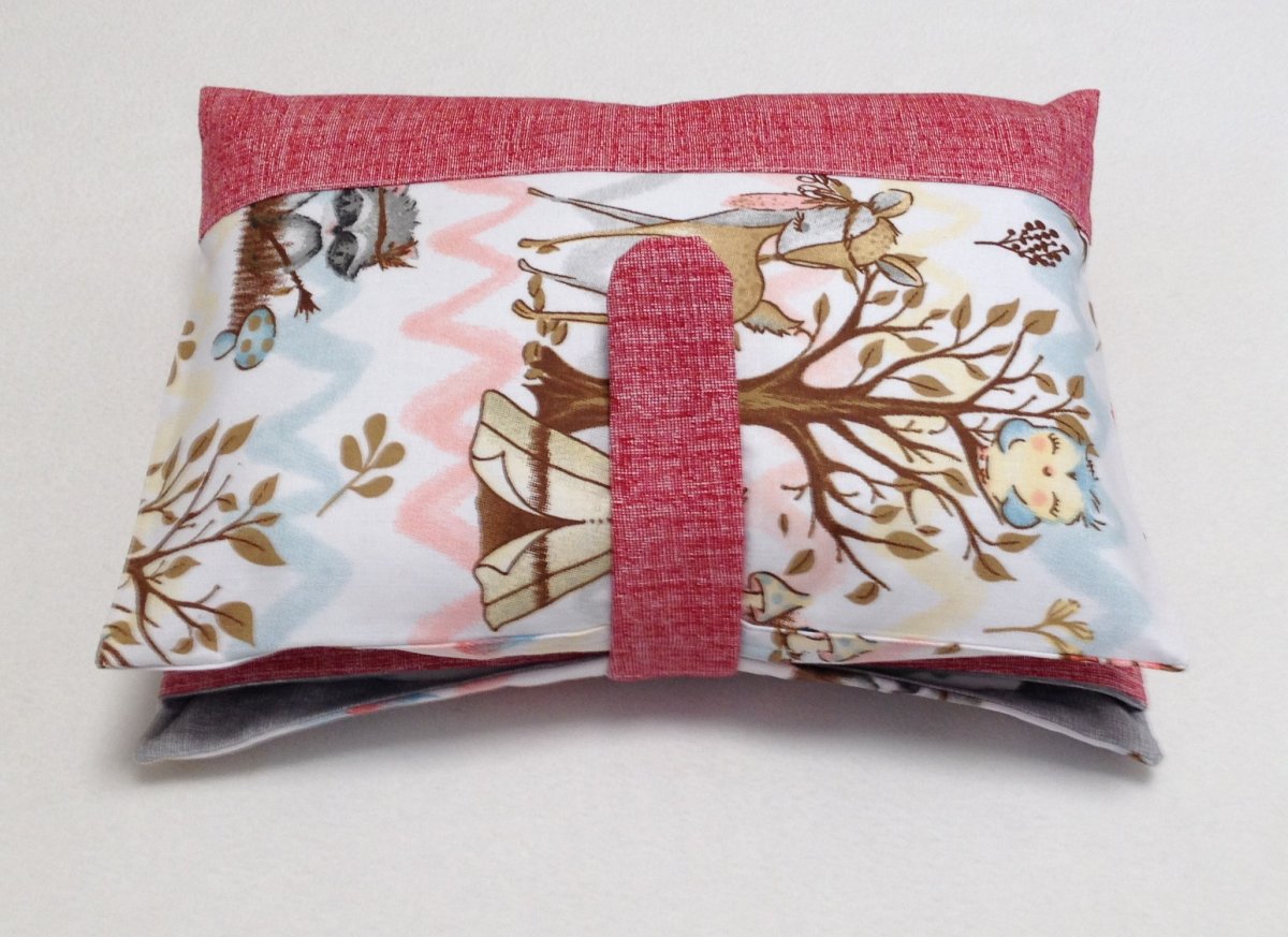 Kapsa na vlhčené ubrousky s oválným otvorem má zapínání na zip (rozměr kapsy: 17 x 27 cm, oválný otvor s rozměrem 7 x 12 cm).