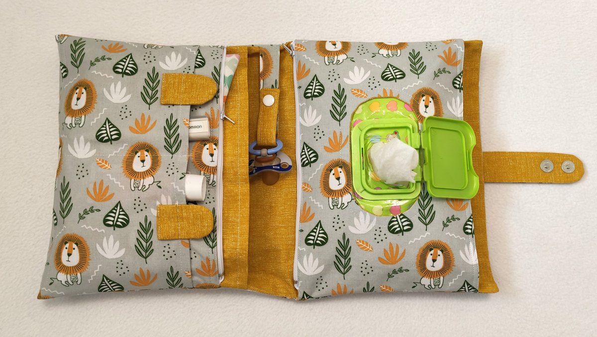 Pod kapsou s vlhčenými ubrousky je velká kapsa (rozměry 18 x 27 cm), do které se vejde přebalovací podložka.