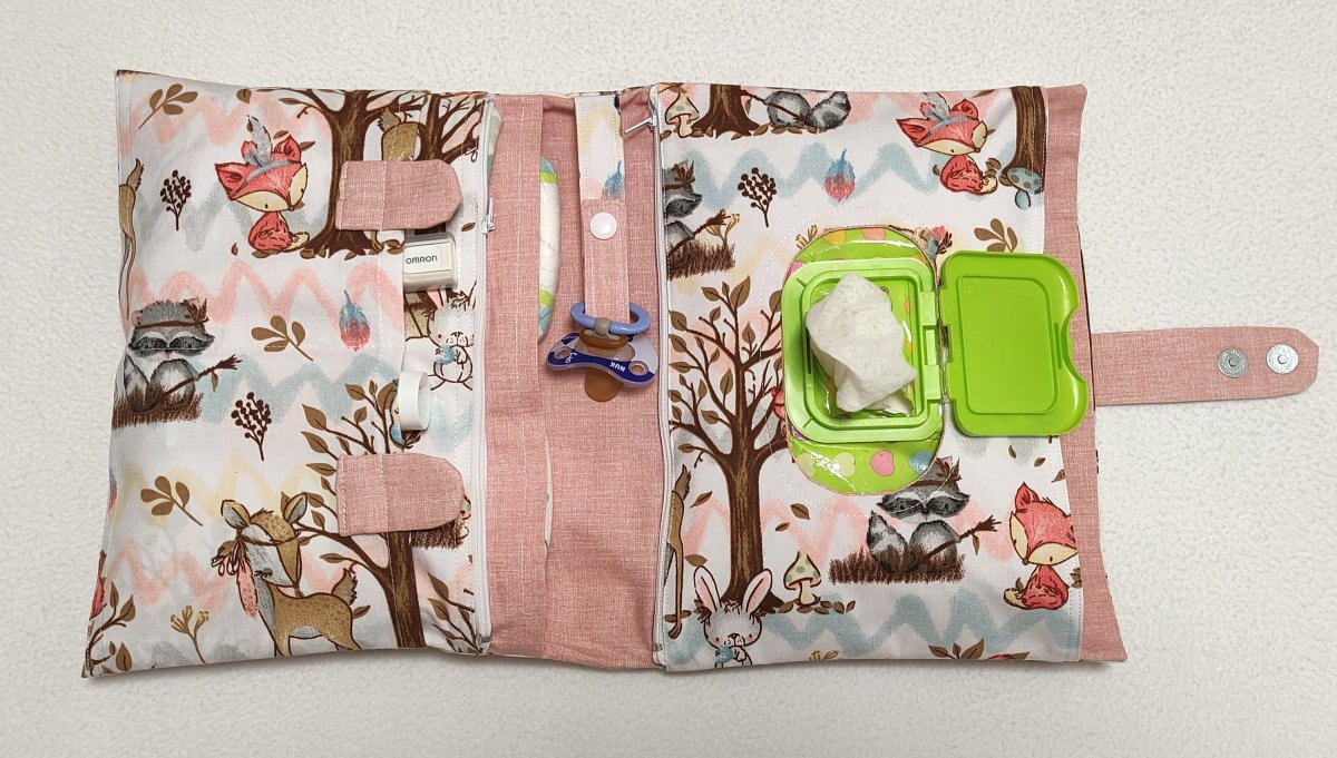 Pod kapsou s vlhčenými ubrousky je velká kapsa (rozměry 18 x 27 cm), do které se vejde přebalovací podložka.