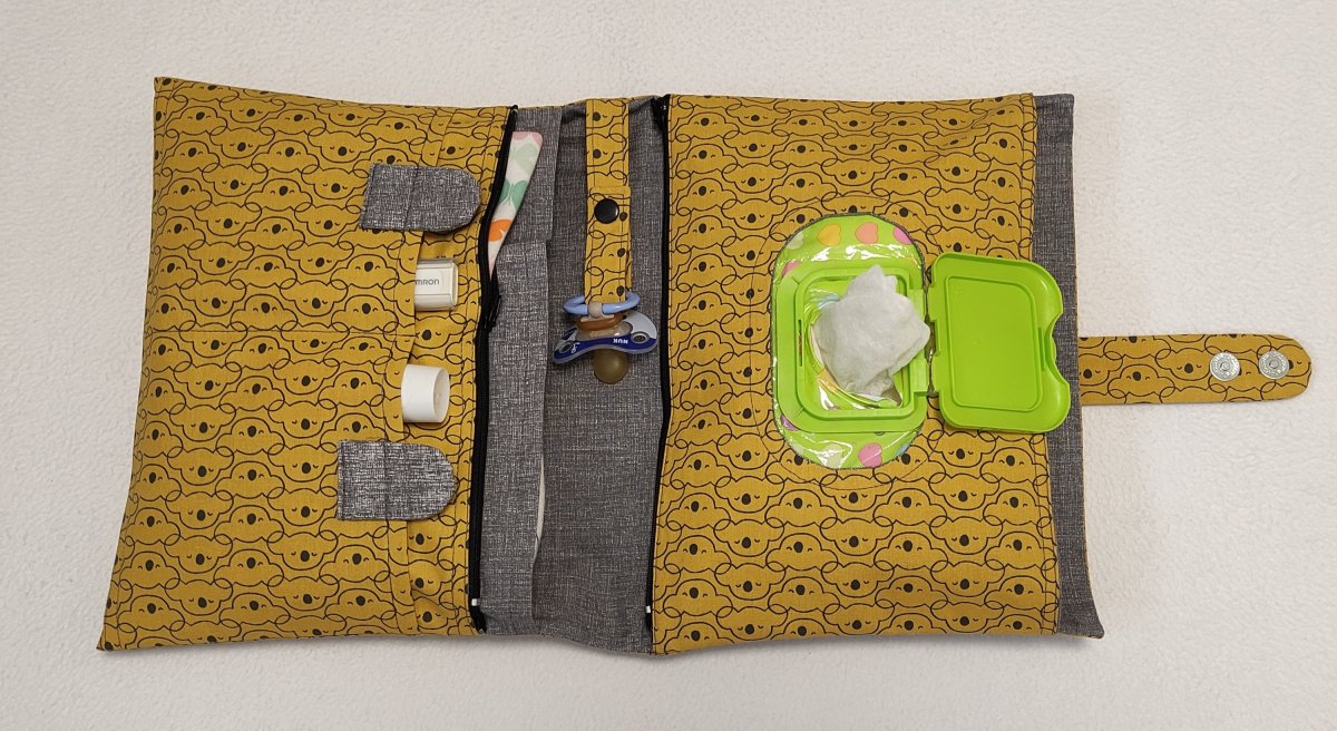 Pod kapsou s vlhčenými ubrousky je velká kapsa (rozměry 18 x 27 cm), do které se vejde přebalovací podložka.