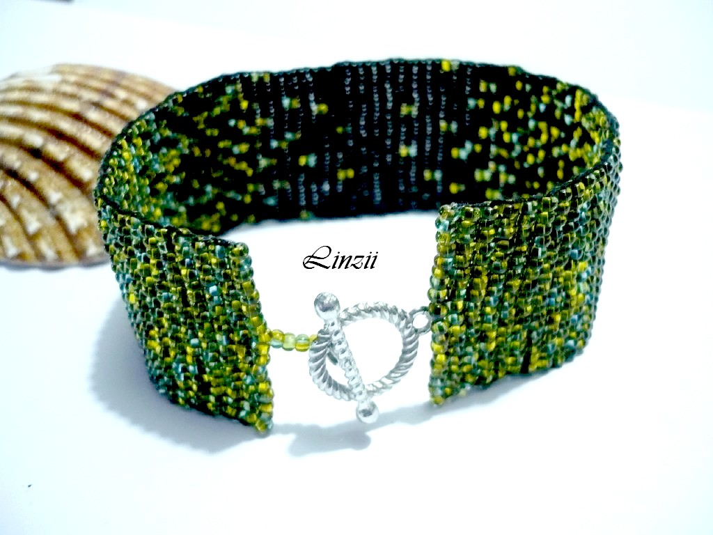 Ručně šitý náramek z korálků se stříbrným zapínáním O a T. Délka cca 18 cm se zapínáním. Výroba tohoto náramku zabrala cca 5 hodin práce. Lze ho vyrobit v různých délkách, šířkách a barvách na přání, nebojte se ozvat:)