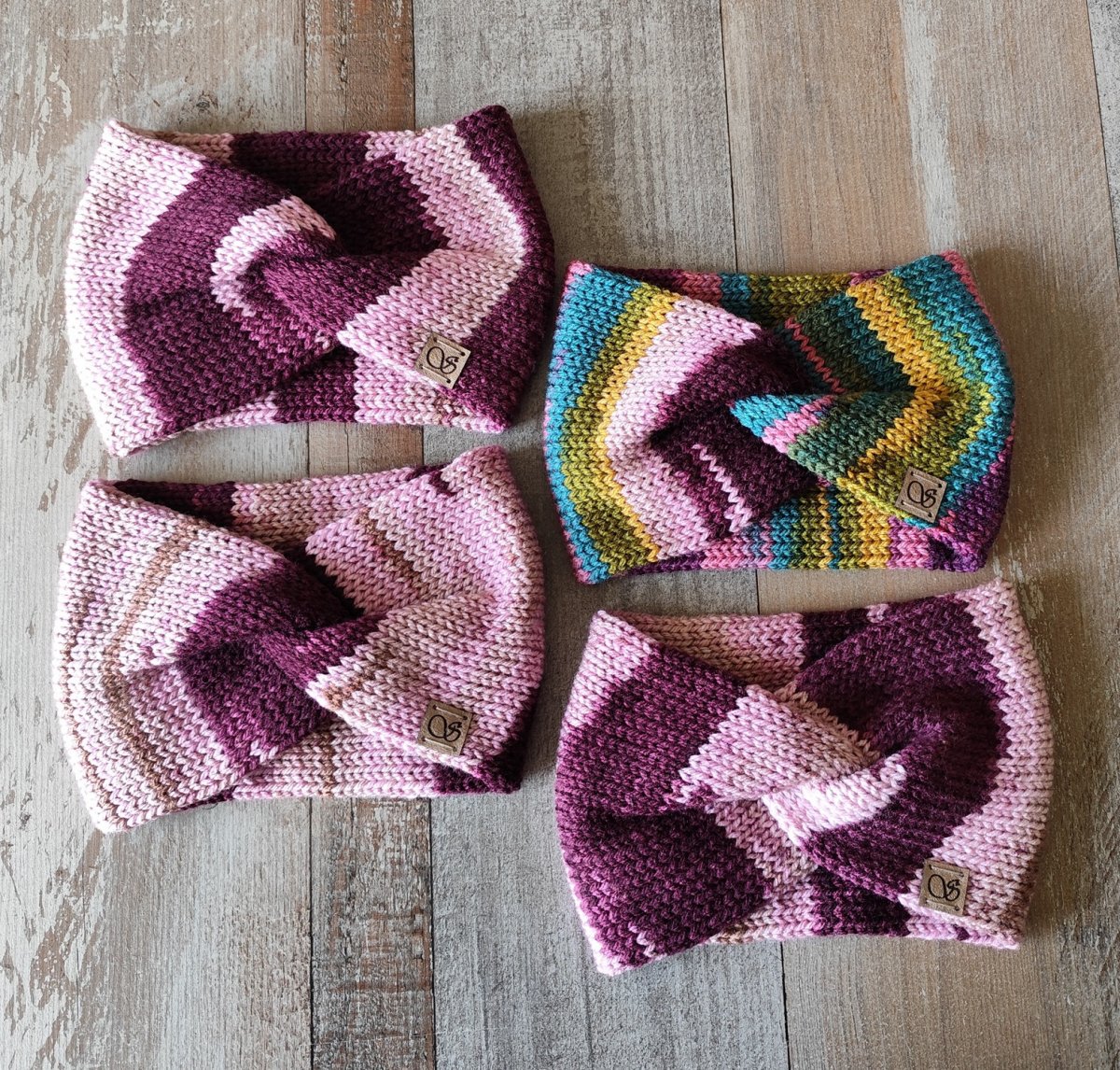 Tyto čelenky jsou pletené z batikované příze Lady de Luxe. Jsou dvouvrstvé, měkoučké, pružné, krásně se přizpůsobí Vaší velikosti.