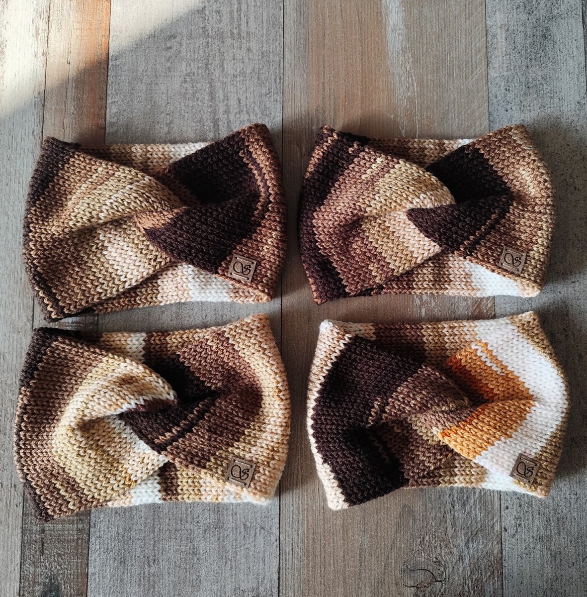 Díky batikované přízi je každá čelenka trošičku jiná. Každá je dozdobena semišovým štítkem s naším logem, které lze snadno odstřihnout.