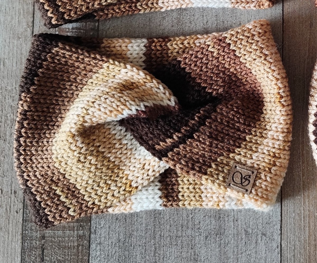 Díky batikované přízi je každá čelenka trošičku jiná. Každá je dozdobena semišovým štítkem s naším logem, které lze snadno odstřihnout.
