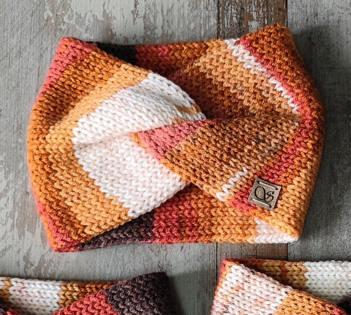 Díky batikované přízi je každá čelenka trošičku jiná. Každá je dozdobena semišovým štítkem s naším logem, které lze snadno odstřihnout.