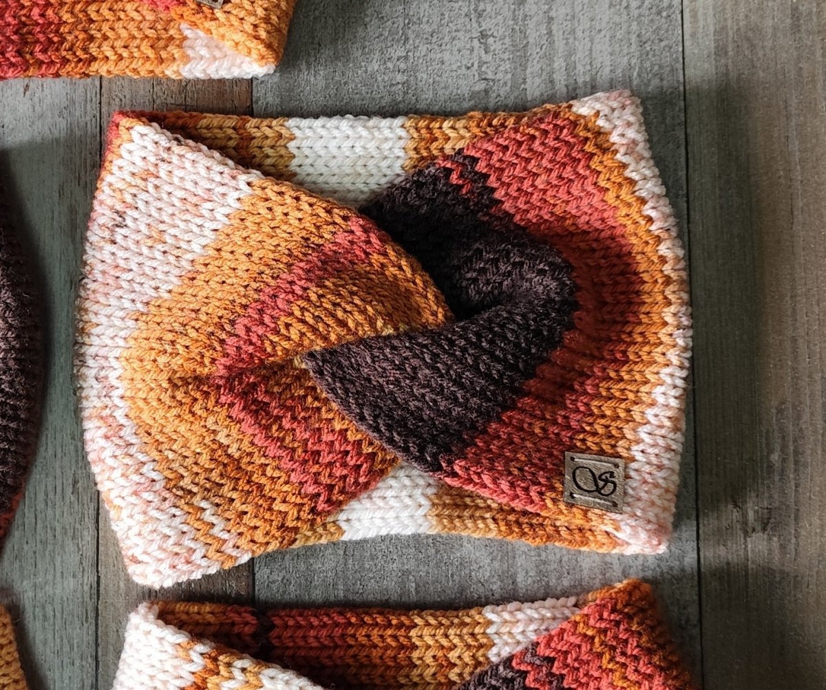 Díky batikované přízi je každá čelenka trošičku jiná. Každá je dozdobena semišovým štítkem s naším logem, které lze snadno odstřihnout.