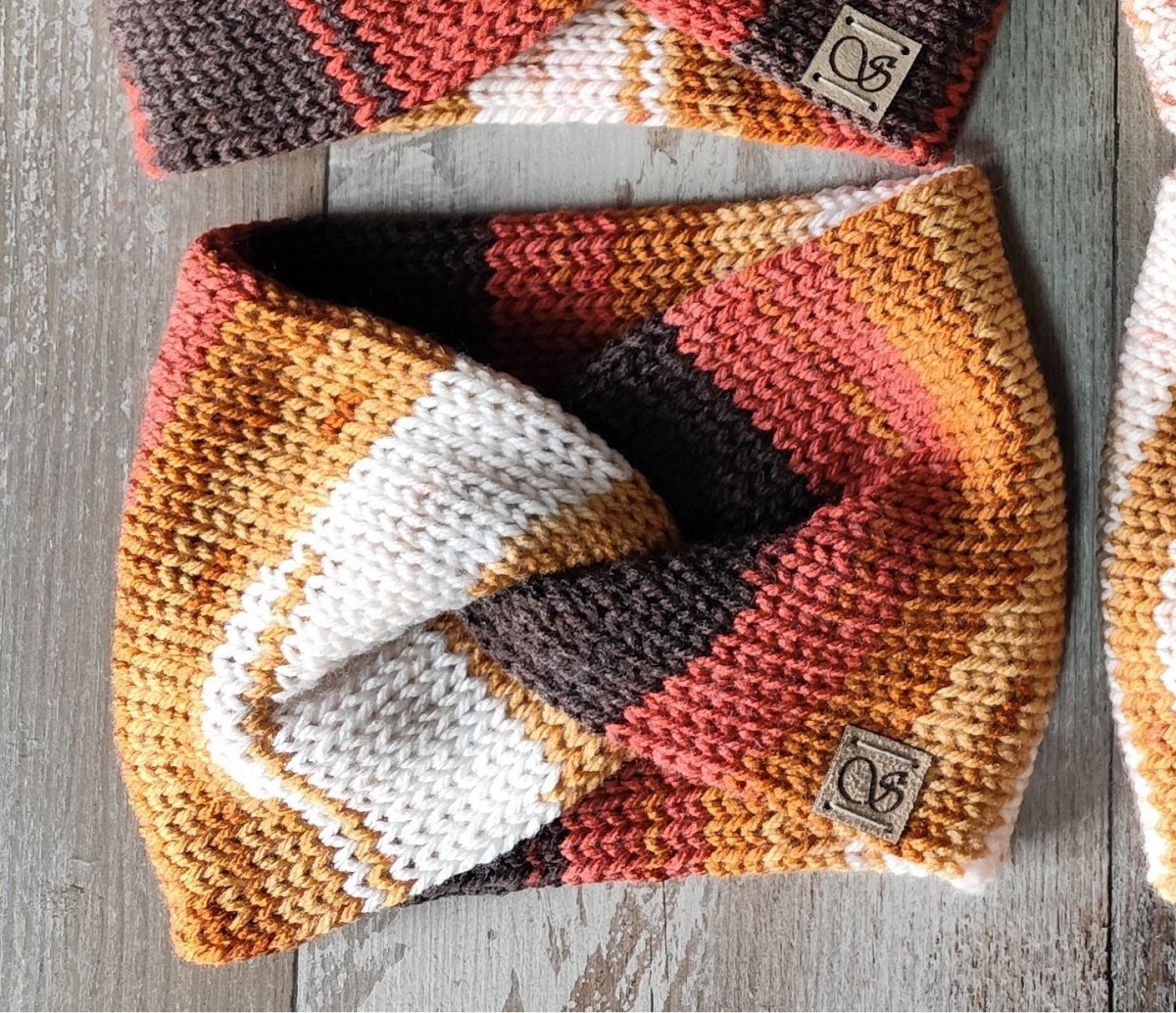 Díky batikované přízi je každá čelenka trošičku jiná. Každá je dozdobena semišovým štítkem s naším logem, které lze snadno odstřihnout.