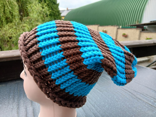 Pletená čepice 2v1 (hnědá + tyrkysová)