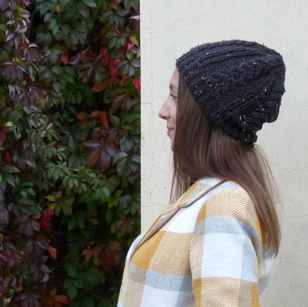 Čepice má vyšší rantl, nad kterým jsou vypleteny copánky