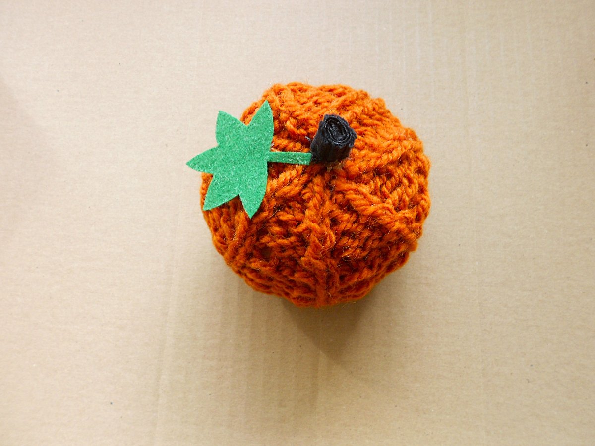 Ručně pletená dýně průměr 26 cm, výška bez stopky 7 cm, plněná vatelínem, barva rezavá.