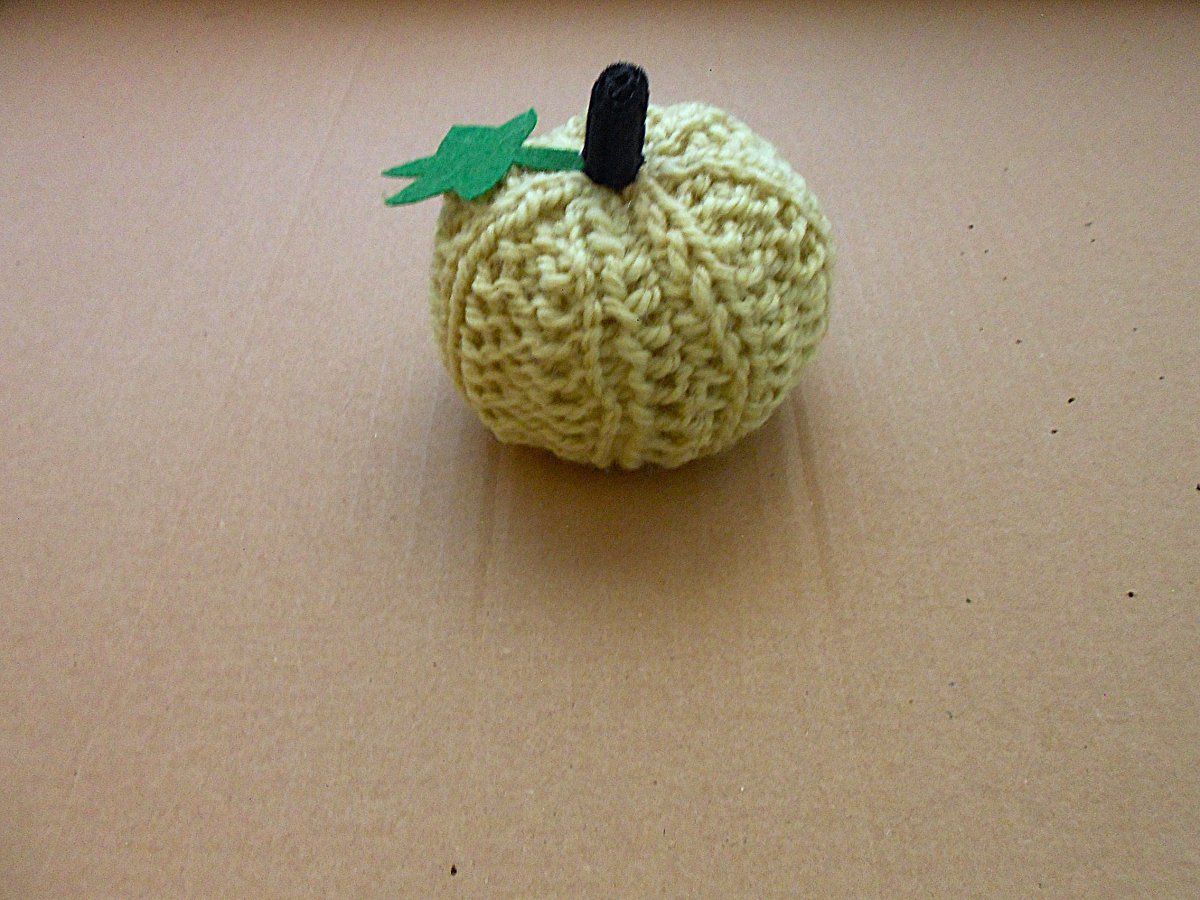 Ručně pletená dýně průměr 28 cm, výška bez stopky 8 cm, plněná vatelínem, barva hrášková.