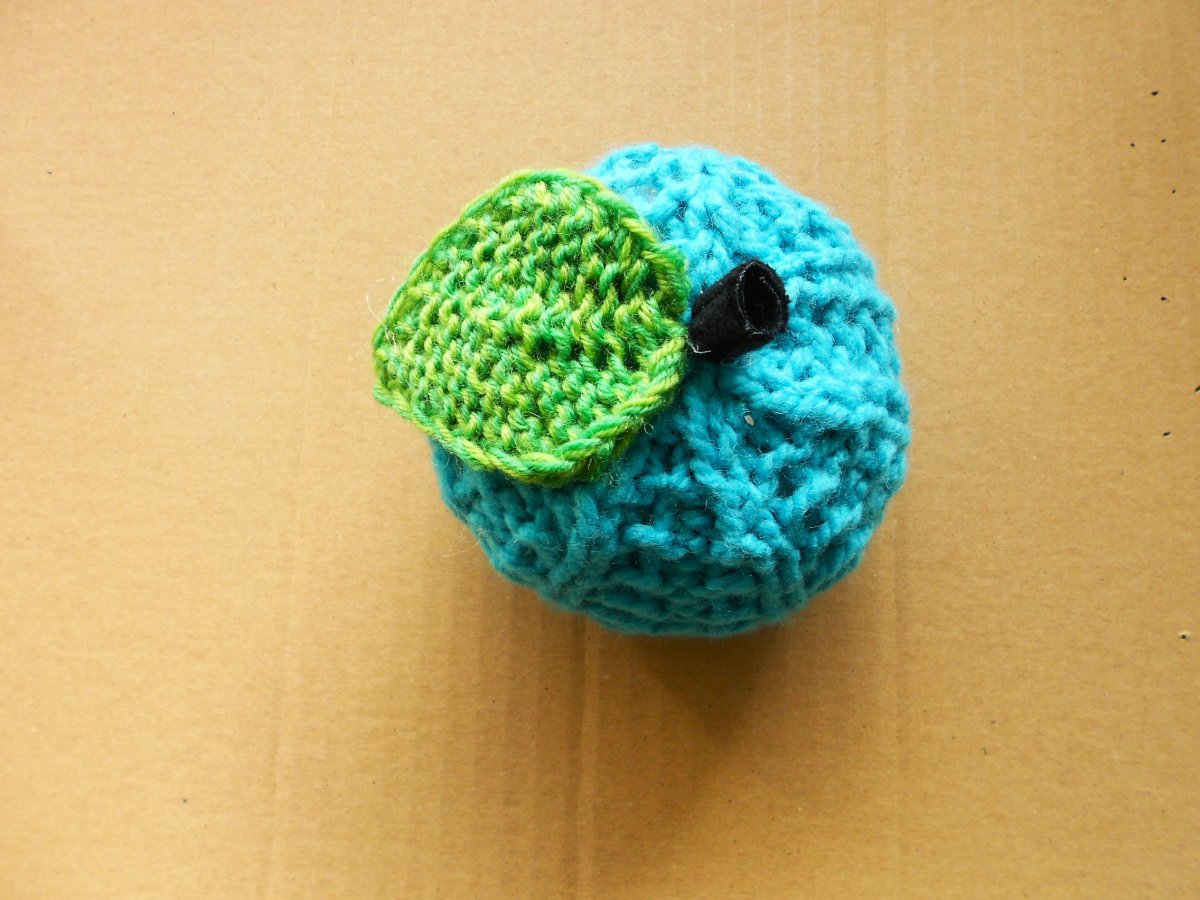 Ručně pletená dýně průměr 30 cm, výška bez stopky 7 cm, plněná vatelínem, barva tyrkysová.