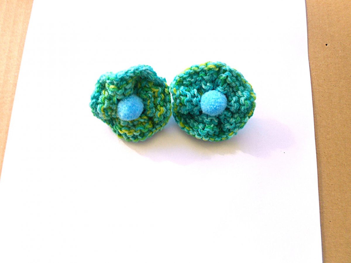 Tyrkysovo-žlutá pletená gumička do vlasů. Pletená kytička, i gumička jsou přilepené na riflovině pro větší pevnost. Průměr kytičky je 6cm, průměr gumičky 2,5 cm, gumička je jemná, na dvojí otočení, viz. 2. fografie.