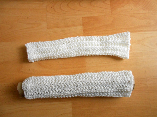 Ručně pletené bílé návleky na ruce s vlnou, malé, délka 30cm, děti 4-10let. Dají se použít nejen ke kroji, ale i k šatům. Doporučuji jemné praní.