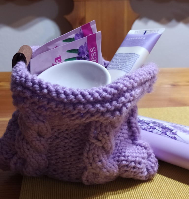 Pletené pytlíčky můžete použít jako originální balení pro dárek, nebo na různé maličkosti v domácnosti. Pytlíky se dají prát, nejlépe ručně.Velikost: š16 cm x v12 cmBarva: fialováPytlík je bez použité dekorace :)