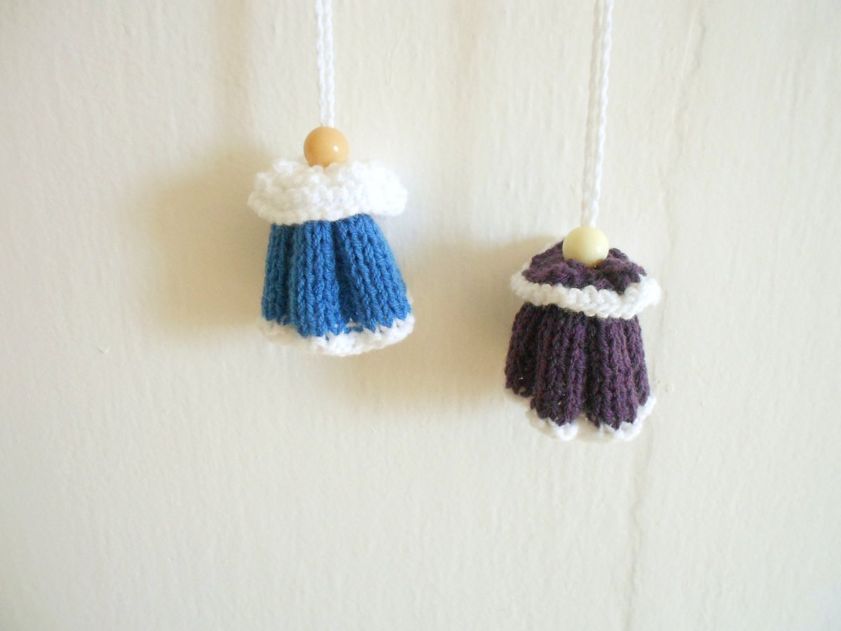 Ručně pletený zvoneček k zavěšení, podle vlastního návrhu. Velikost: výška bez šňůrky na zavěšení 8 cm, šířka 6 cm, záleží na vytvarování. Zvoneček jde i samostatně postavit.