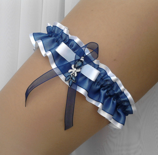 NOVÝ LUXUSNÍ SATÉNOVÝ SVATEBNÍ PODVAZEK - pod svatební šaty - zdobeno tmavě modrými krystaly a drobnými stříbrnými štrasy. Další svatební doplňky v mé nabídce - vyberete-li více zboží, hradí se jen jedno poštovné a balné. Možnost vyzkoušení - osobního výběru v Blansku.