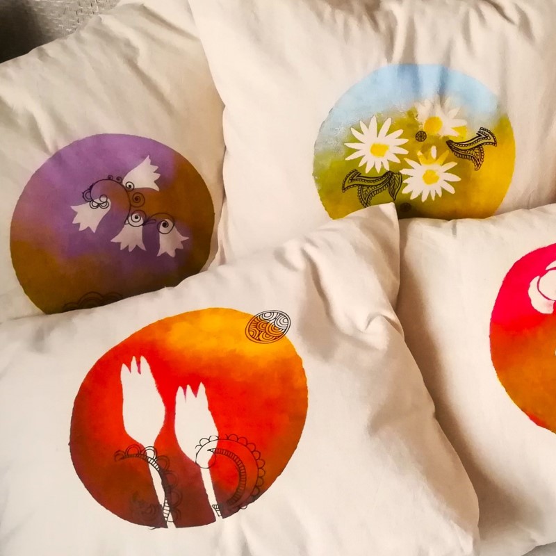 Motiv je namalován kvalitními barvami na textil, zafixován zažehlením a při dodržení níže uvedených pokynů k ošetření nemusíte mít strach o jeho trvanlivost.