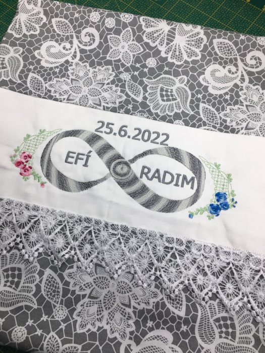 Možnost libovolné barevné kombinace a také daného tématu, které osloví oslavence (obdarovaného). Výšivka je vyšitá kvalitními německými bavlnkami *Sulky* na stroji *Brother*.