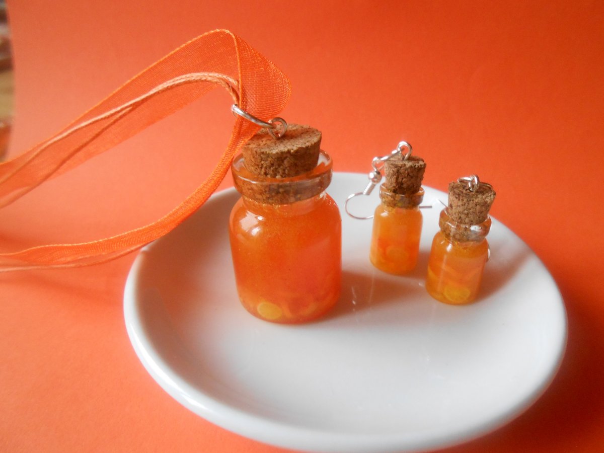 náušnice o velikosti 2,5 cm na postříbřeném afroháčku se silikonovou zarážkou o celkové délce 4,5 cm, šperk o velikosti 3 cm na bavlněné oranžové šňůrce o délce 40 cm