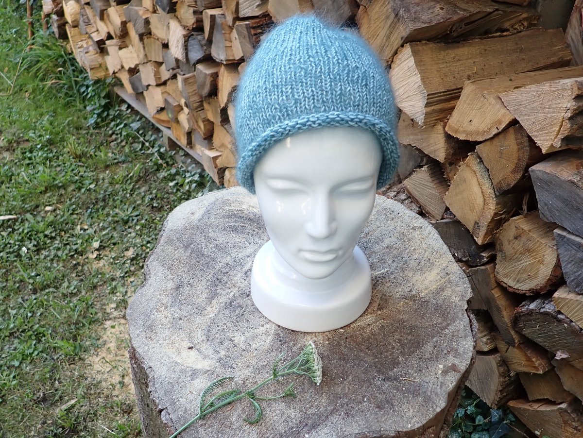 Nadýchaná jednoduchá čepice je díky použitému materiálu lehounká jako pírko, ale přesto teplá.