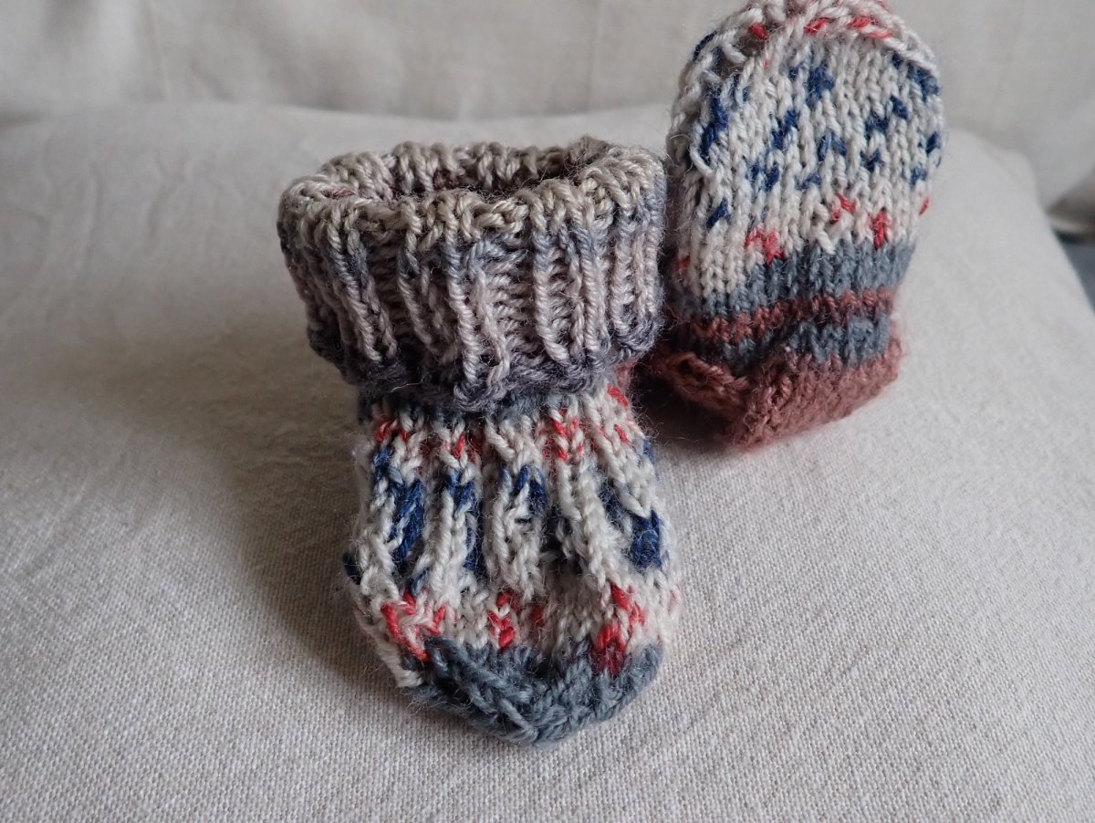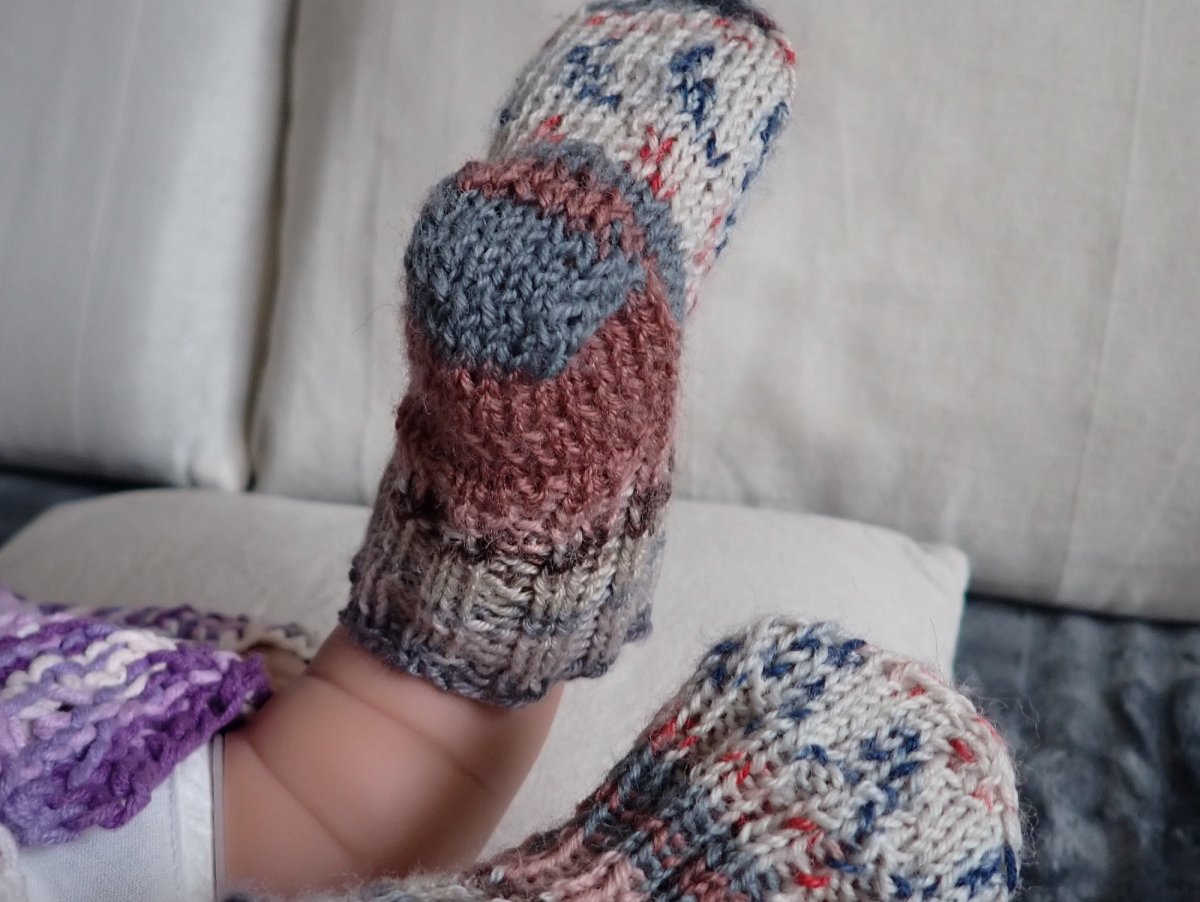 Pletené ponožky pro panenku - miminko vhodné i pro jiné panenky podobných rozměrů, případně pro novorozeňátka na focení. Délka chodidla je 9 cm a vysoké jsou 8 cm.