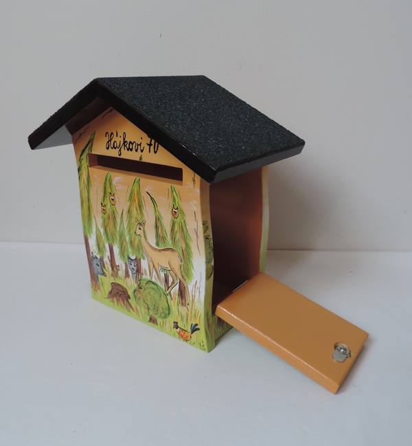 Poštovní schránka zamykatelná(v-35.š-32.h14cm).Otvor na vhazování dopisů 16x2,5cm.Malováno akr.barvami,přelakováno lodním lakem.Krásná ozdoba k Vašemu domu,chatě.Originální dárek.Na Vaše přání dopíši příjmení,nebo barevnou variaci.