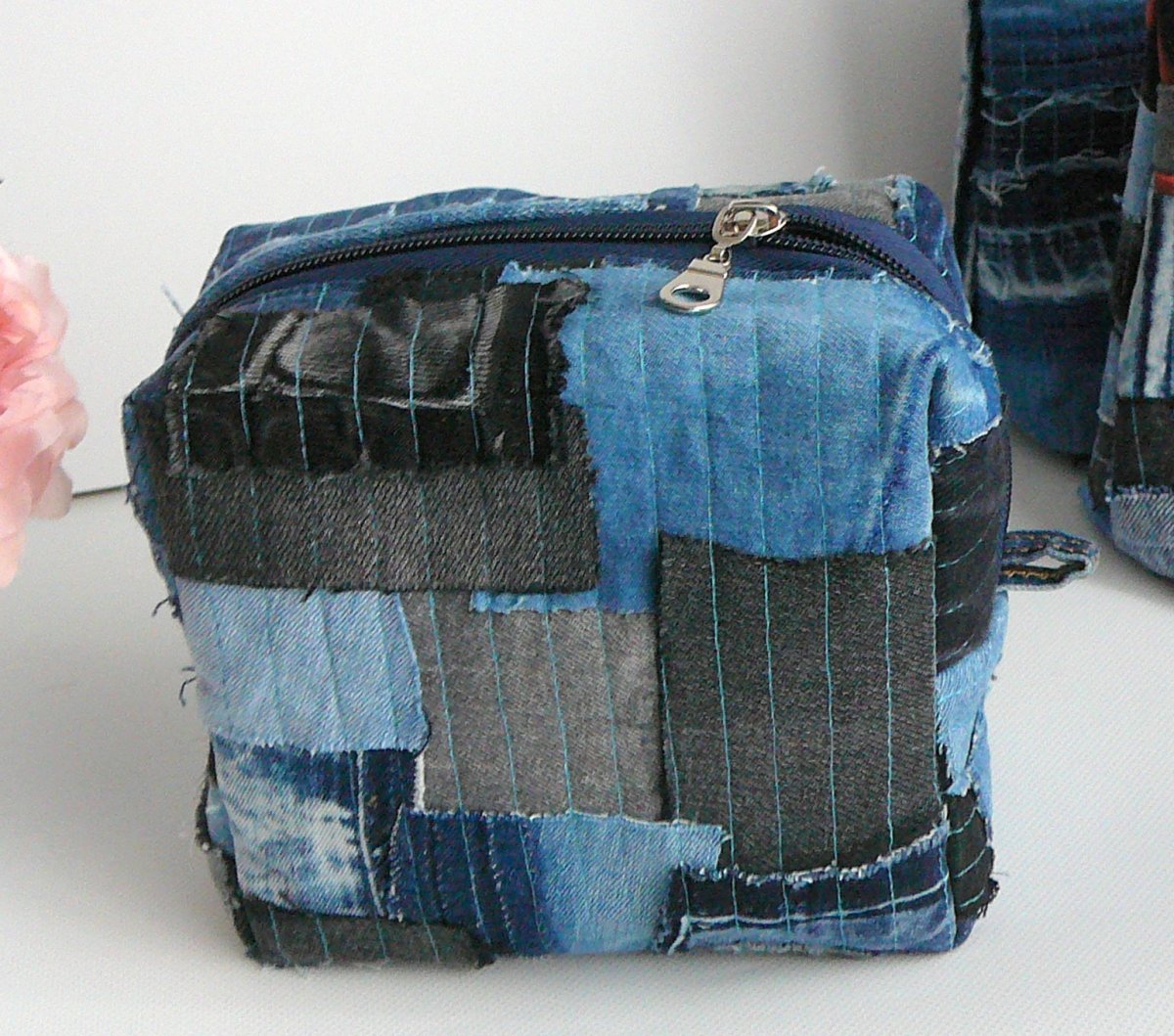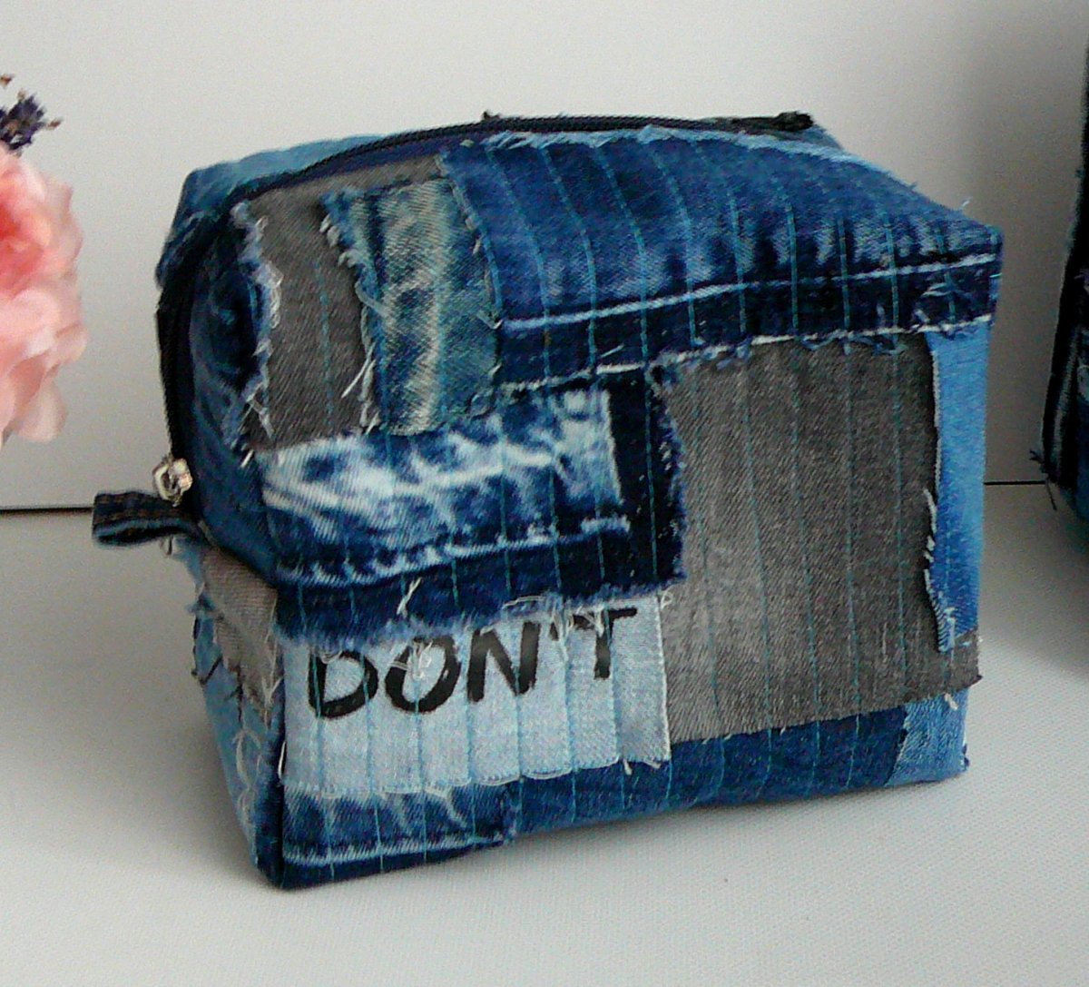 Originální pouzdro z recyklovaného denimu je víc než jen praktický doplněk – je to stylové vyjádření individuality. Každý patch, každé třepení a nápis 'DON'T' tvoří jedinečný design, který zaujme na první pohled. Ideální na drobnosti, kosmetiku nebo jako statement kousek do kabelky. Ručně šité s důrazem na detail a udržitelnost. Rozměr: šířka 14 cm, výška12 cm, hlobka 9 cm.