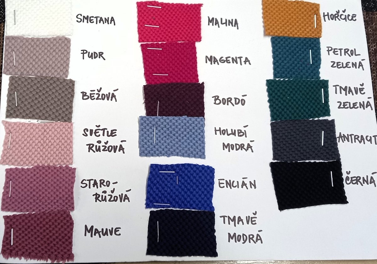 Jsou ušité z příjemného materiálu 65% bavlna, 27% PES, 8% elastan.