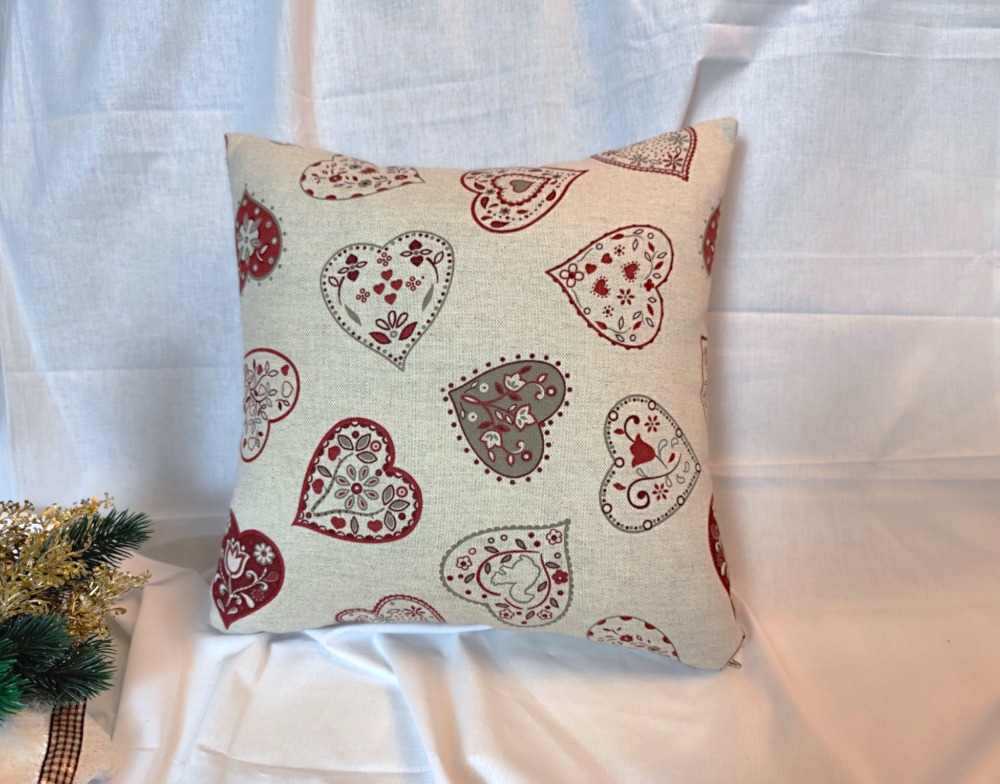 Povlak na polštář bordo srdíčka na režné,