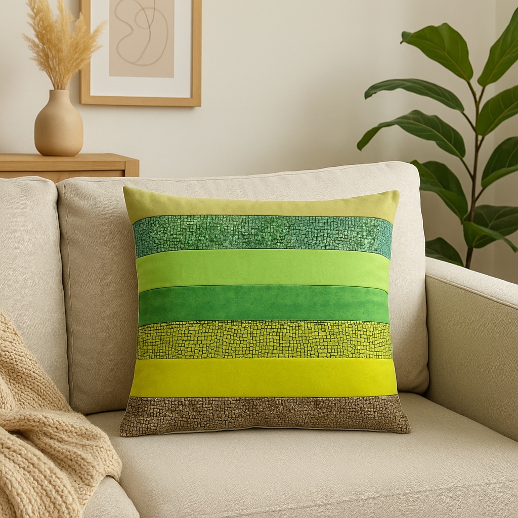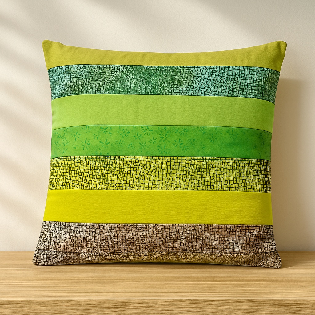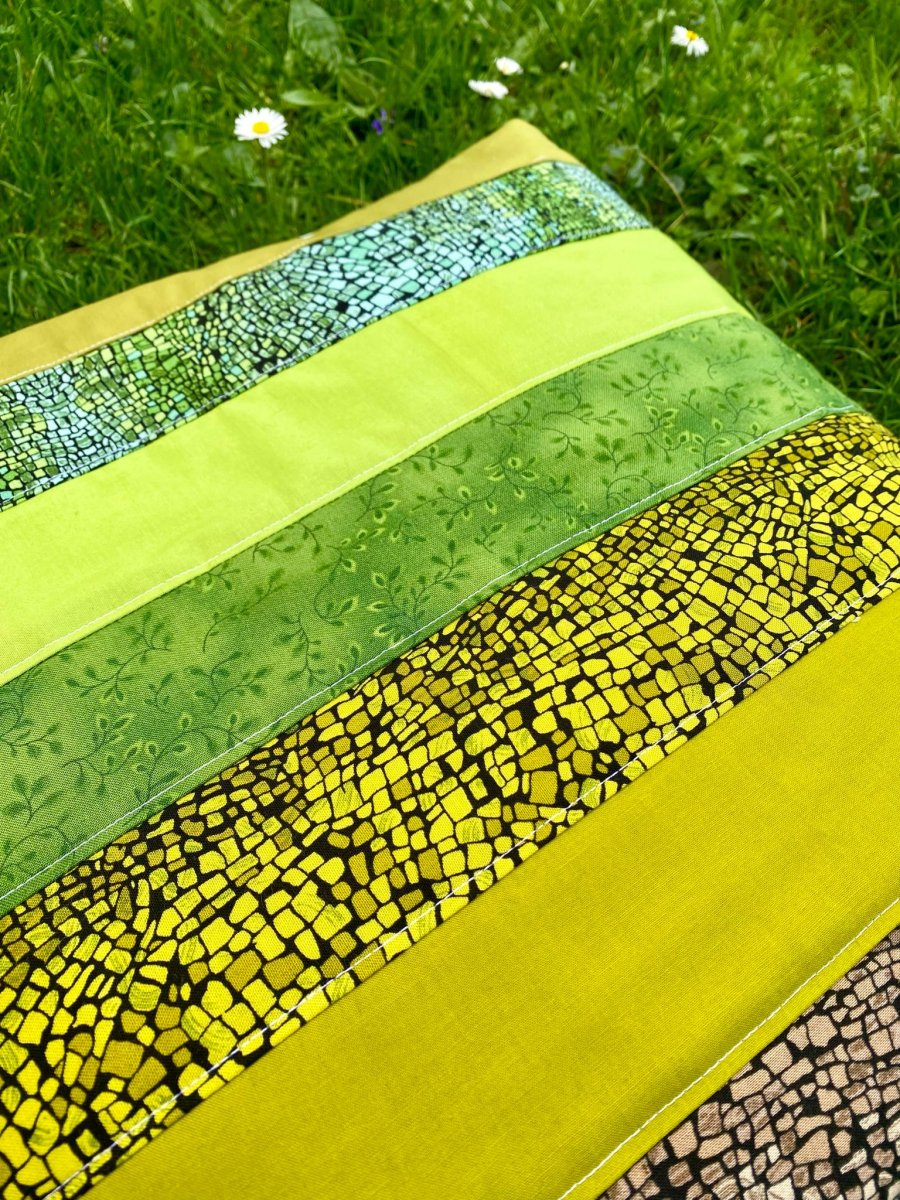 Originální povlak na polštář ušitý patchworkovou technikou z pruhů látek v zemitých odstínech. Vynikne na chalupě, v rustikálním interiéru, ale i kdekoliv jinde.