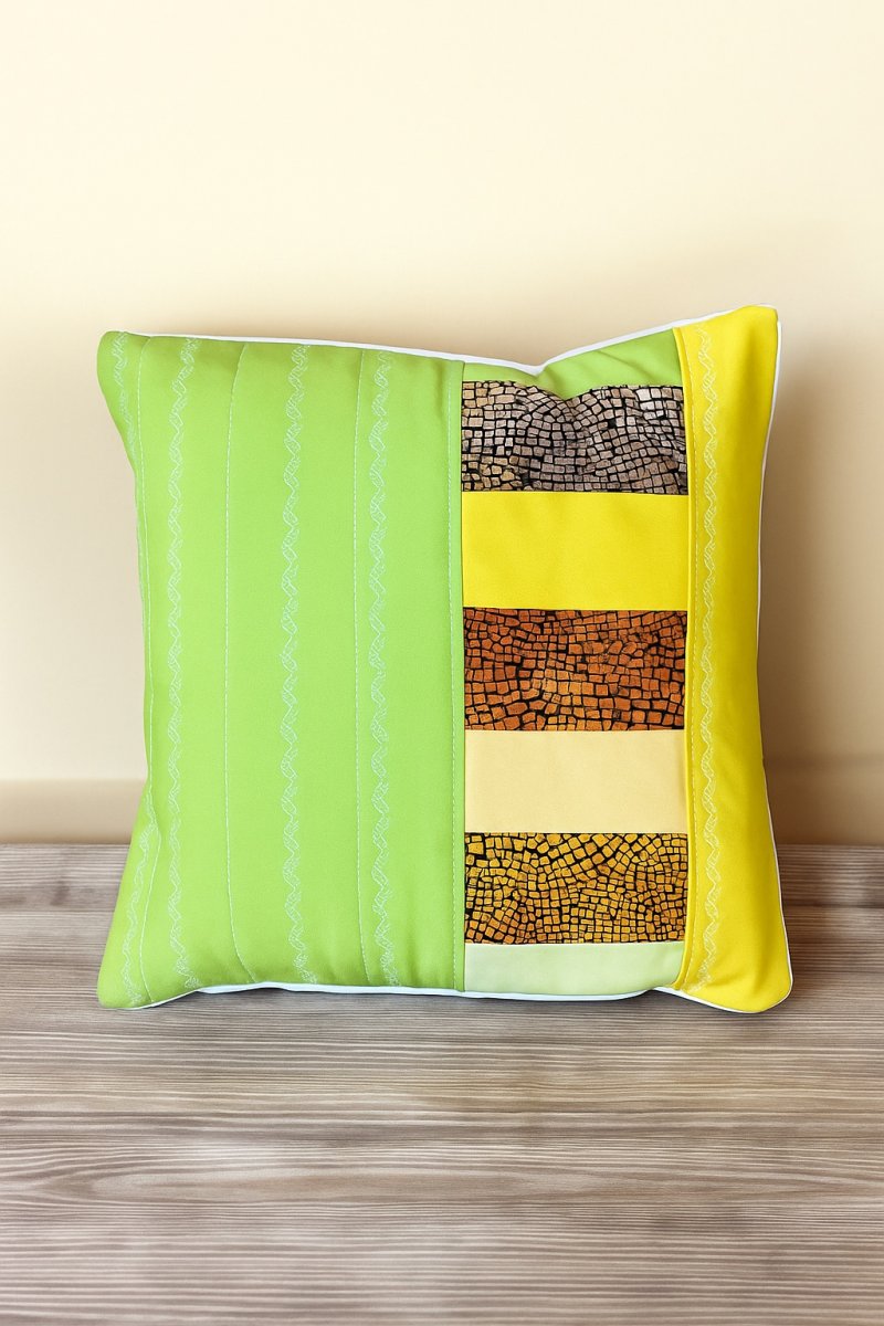 Povlak na polštář ušitý patchworkovou technikou z různobarevných pruhů látek inspirovaný krásou jara.