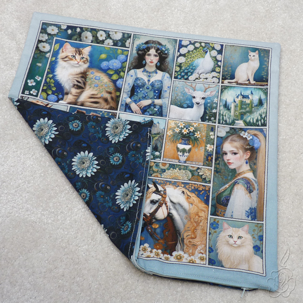 Jedná se o digitální tisk na látku: doporučujeme jemné praní v ruce z rubové strany, žehlení rovněž z rubové strany, žehlit lze na bavlnu, nepoužívat bělidla