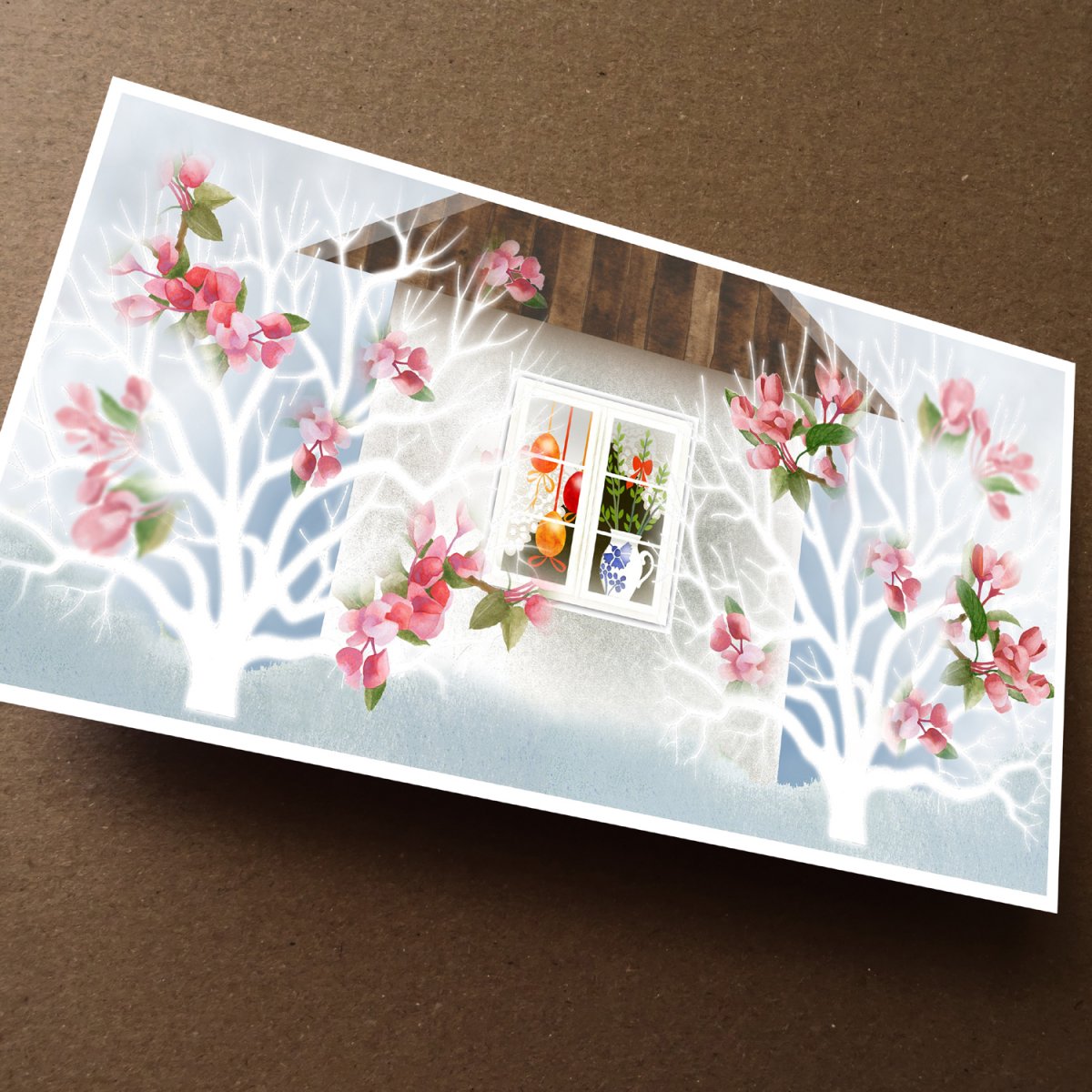 Tištěno na papír s gramáží 300gm2. Rozměr 10 x 21 cm, dvojitá, otevírací karta, uvnitř čistá. Dodáváno s obálkou.
