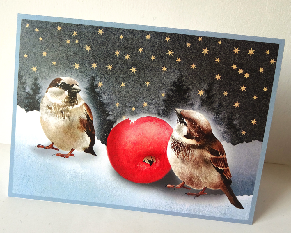Tištěno na papír s gramáží 300gm2. Rozměr 12 x 16,5 cm, dvojitá, otevírací karta, uvnitř čistá. Dodáváno s obálkou.