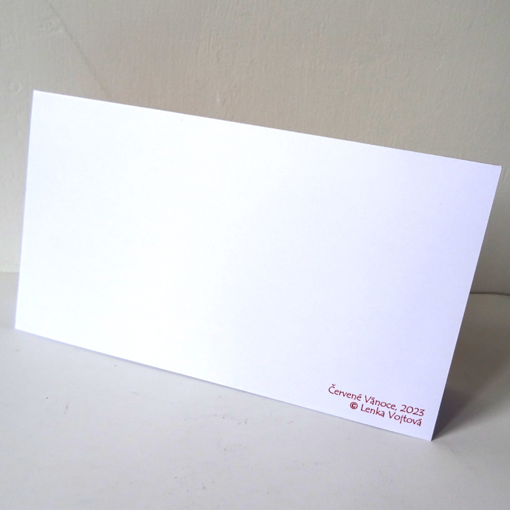 Tištěno na papír s gramáží 300gm2. Rozměr 10,5 x 18,5 cm, dvojitá, otevírací karta, uvnitř čistá. Dodáváno s obálkou.