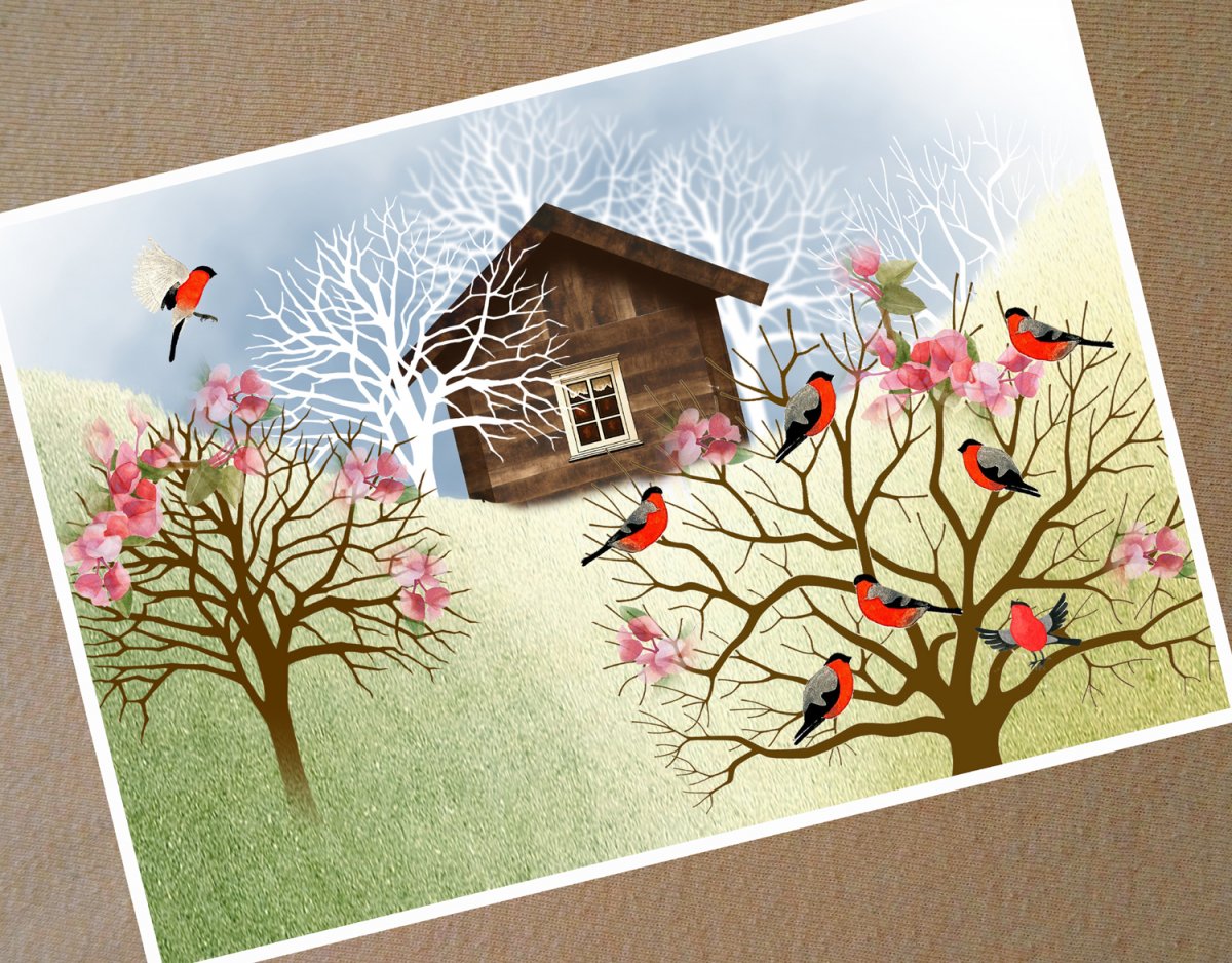 S vlastním autorským motivem. Technika akvarelu s pastelem.