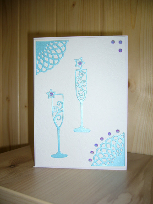 Modrý motiv na bílém podkladě, dozdobený kamínky v modré barvě