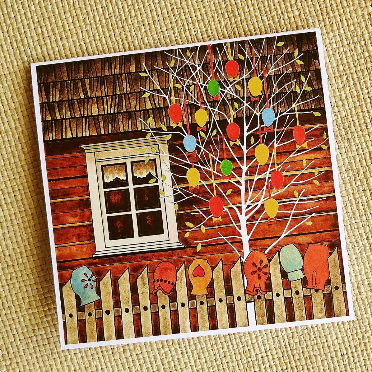 Tištěno na papír s gramáží 300gm2. Rozměr 13 x 13 cm, dvojitá, otevírací karta, uvnitř čistá. Dodáváno s obálkou.