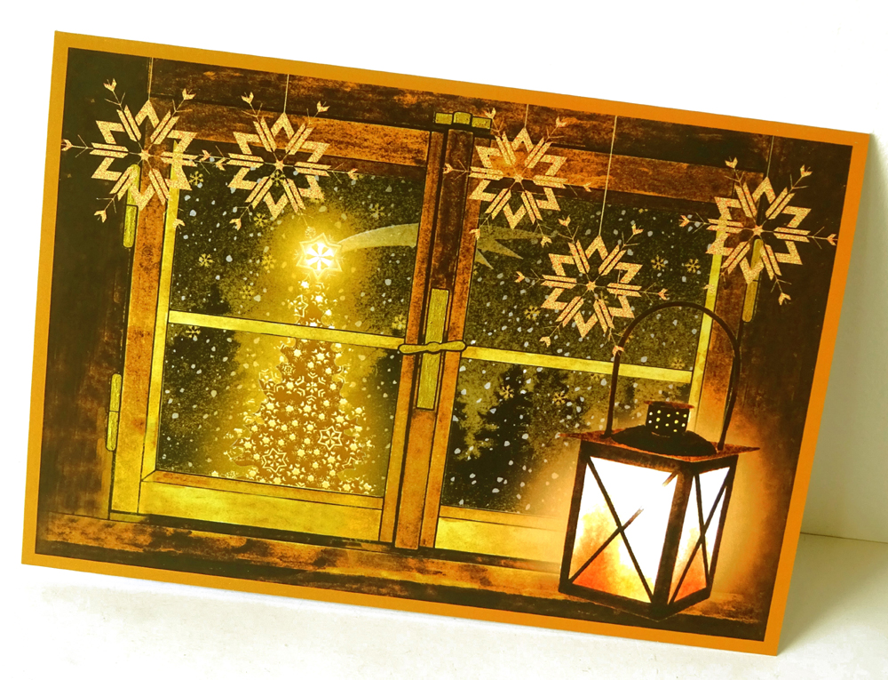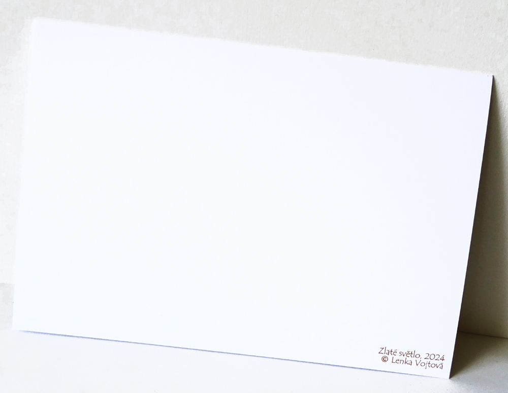 Tištěno na papír s gramáží 300gm2. Rozměr 13,5 x 19,5 cm, dvojitá, otevírací karta, uvnitř čistá. Dodáváno s obálkou.
