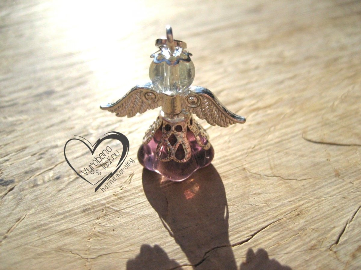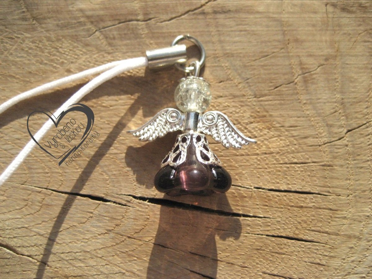 Andělský přívěsek - anděl - andílek - andělíček pro štěstí, tmavě fialový - velikost 2,5 cm bez karabinky, bez šňůrky - přívěsek na mobil - klíče - peněženku, do poznámky napište výběr uchycení - karabinka nebo šňůrka