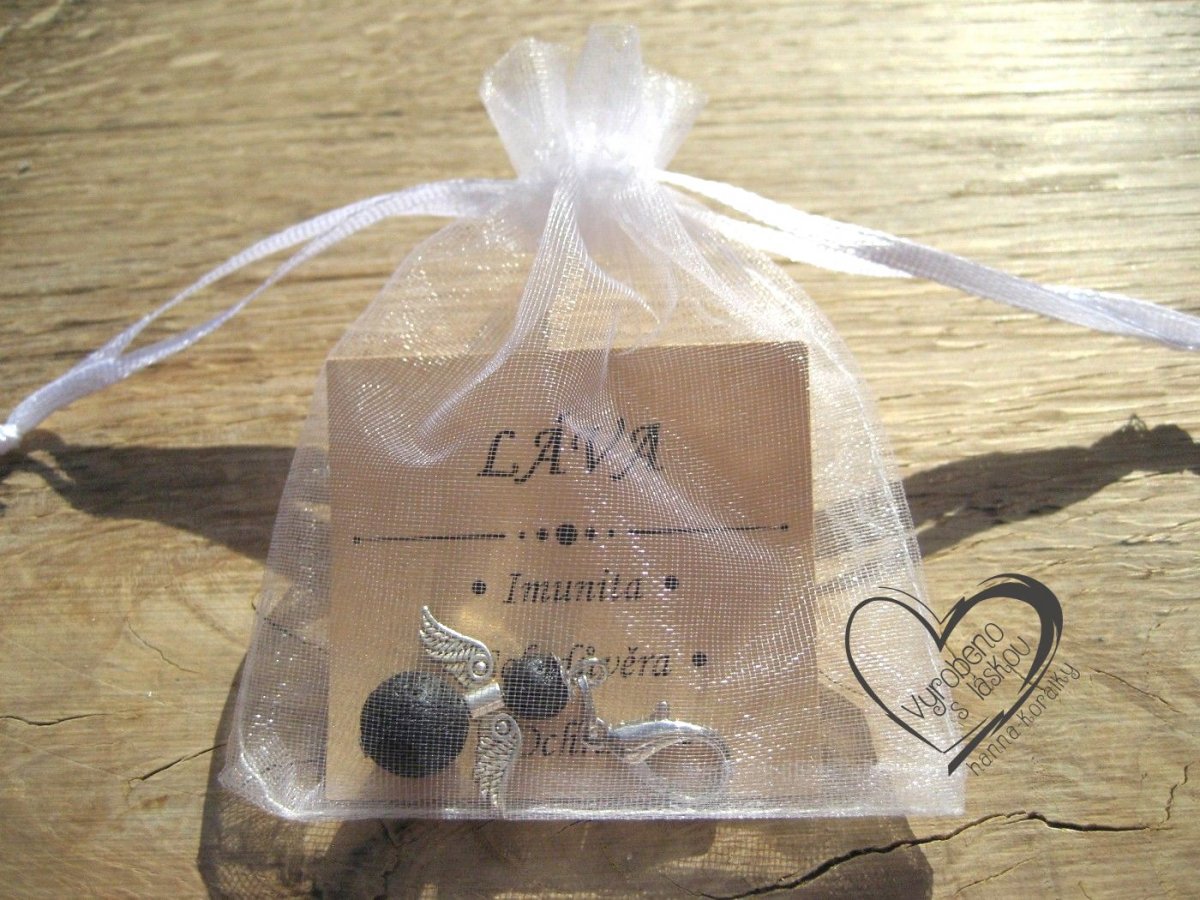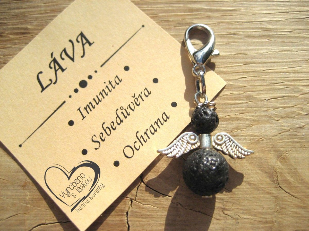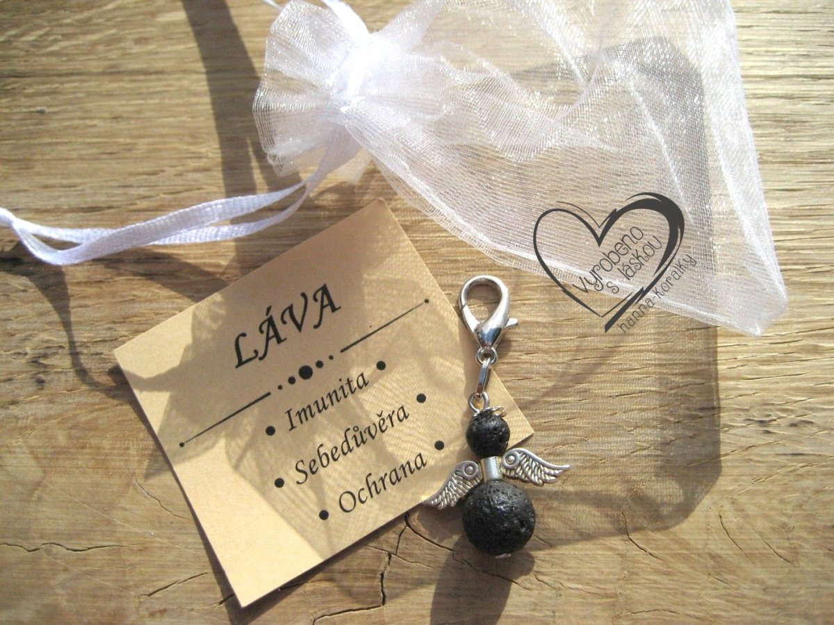 Andělský přívěsek - anděl - andílek - andělíček pro štěstí z vyvřelé horniny lávy, v dárkovém balení s kartičkou - přívěsek na klíče - peněženku nebo jen tak pro radost, velikost přívěsku 4,5cm vč.karabinky