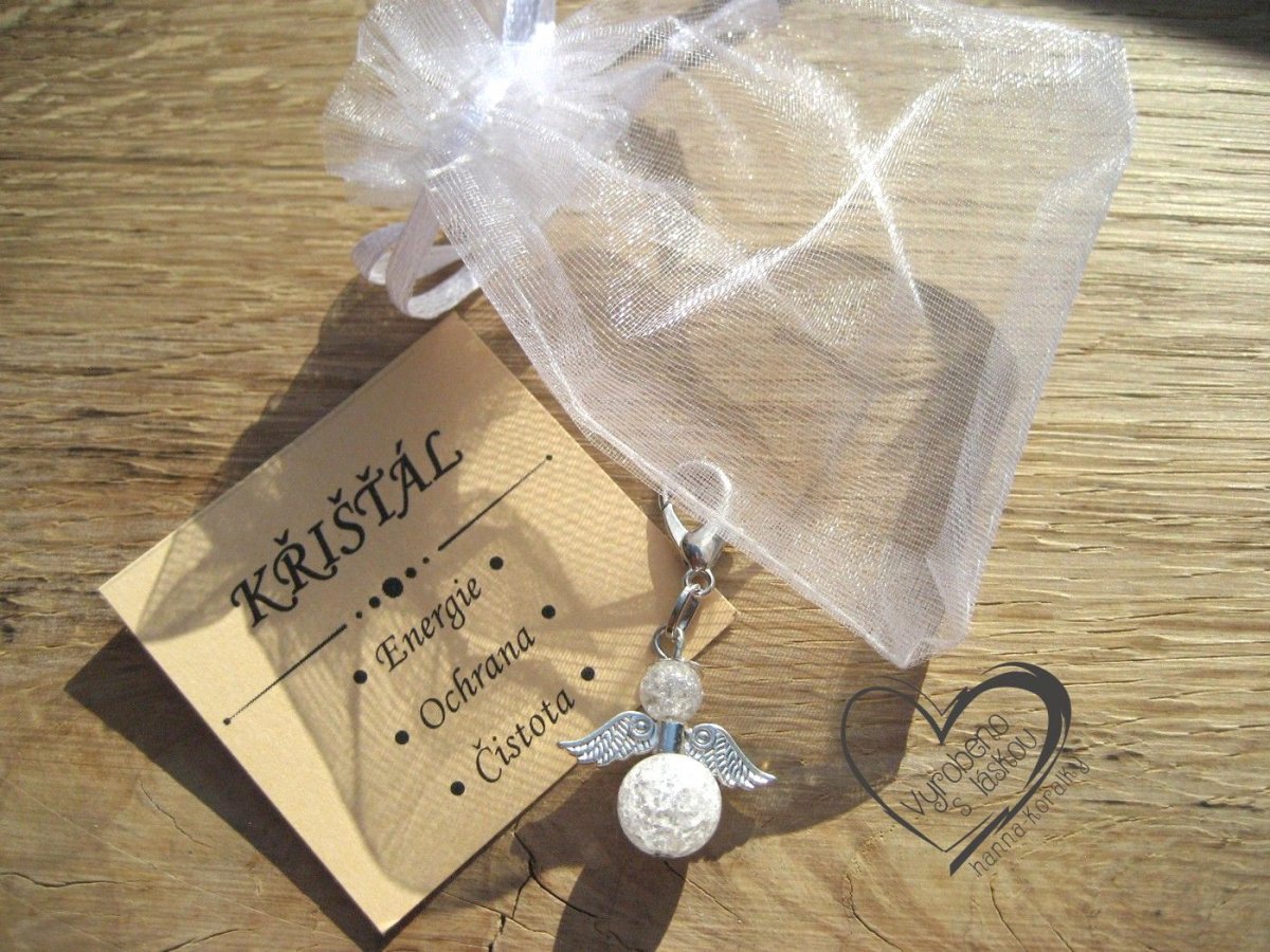 Andělský přívěsek - anděl - andílek - andělíček pro štěstí z minerálu křišťál, v dárkovém balení s kartičkou - přívěsek na klíče - peněženku nebo jen tak pro radost, k objednání jsou v nabídce andílci z dalších 22 minerálů