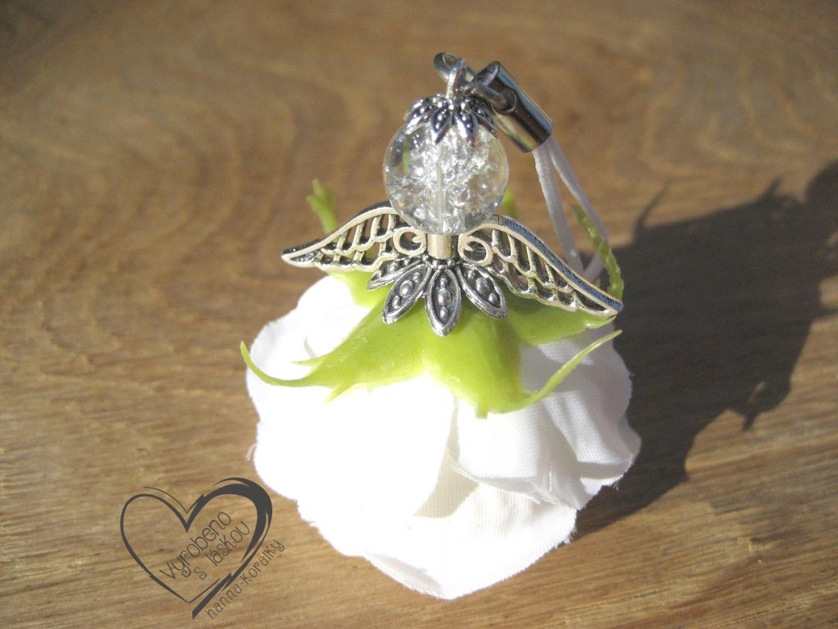 Andělský rozkvetlý přívěsek - anděl - andílek - andělíček růžička pro štěstí, pro radost i pro krásu v dárkovém balení, velikost cca 5 cm + šňůrka, barva - bílá, cena za kus.