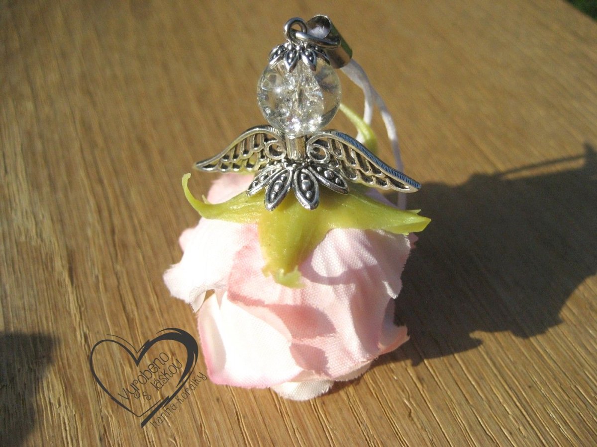 Andělský rozkvetlý přívěsek - anděl - andílek - andělíček růžička pro štěstí, pro radost i pro krásu v dárkovém balení, velikost cca 5 cm + šňůrka, barva - bílá s růžovým nádechem, cena za kus.