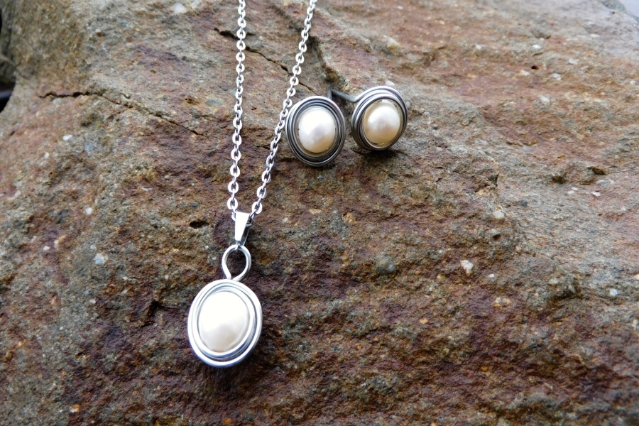 Materiál:nerez, bílá říční perla