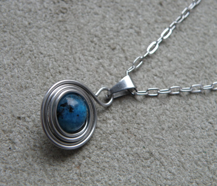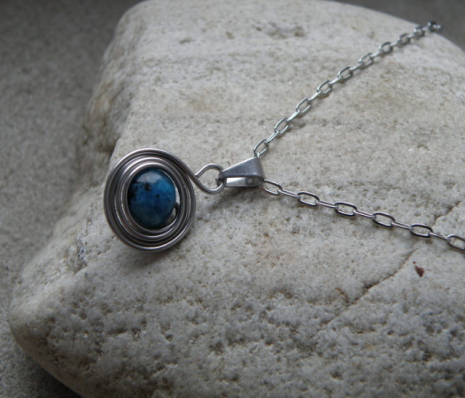 Přívěšek samostatný z chirurgické oceli, zdobí je krásné chryzokoly, průměr je 6 mm . Řetízek není v ceně, najdete ho zde