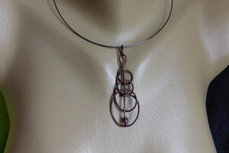 Zavěšeno na patinované nerezové obruči je v ceně.Možno předělat na kulatou kůži nebo měděný řetízek.