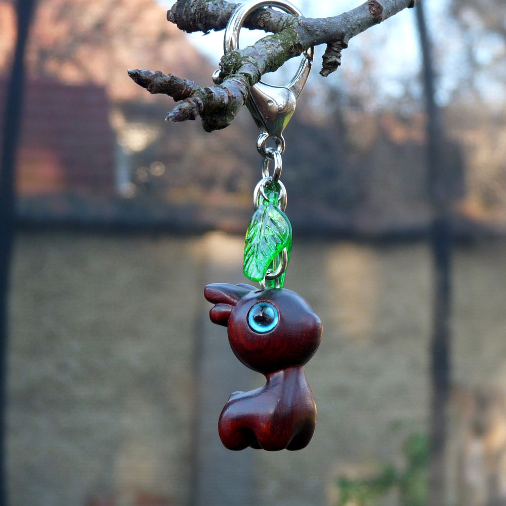 Krásný vyřezávaný přívěsek ze dřeva - modrooký jelínek